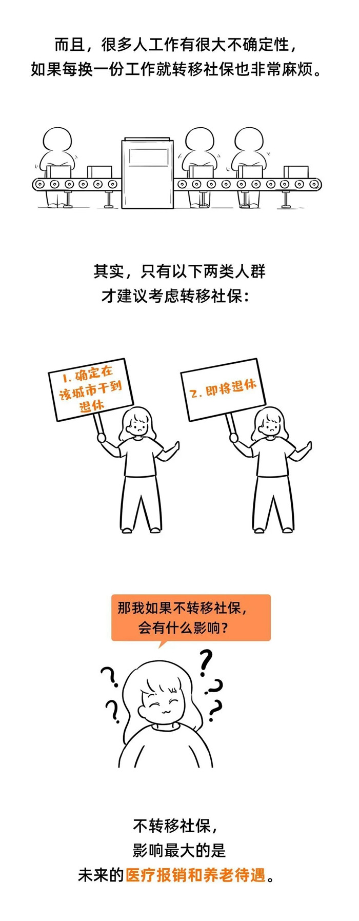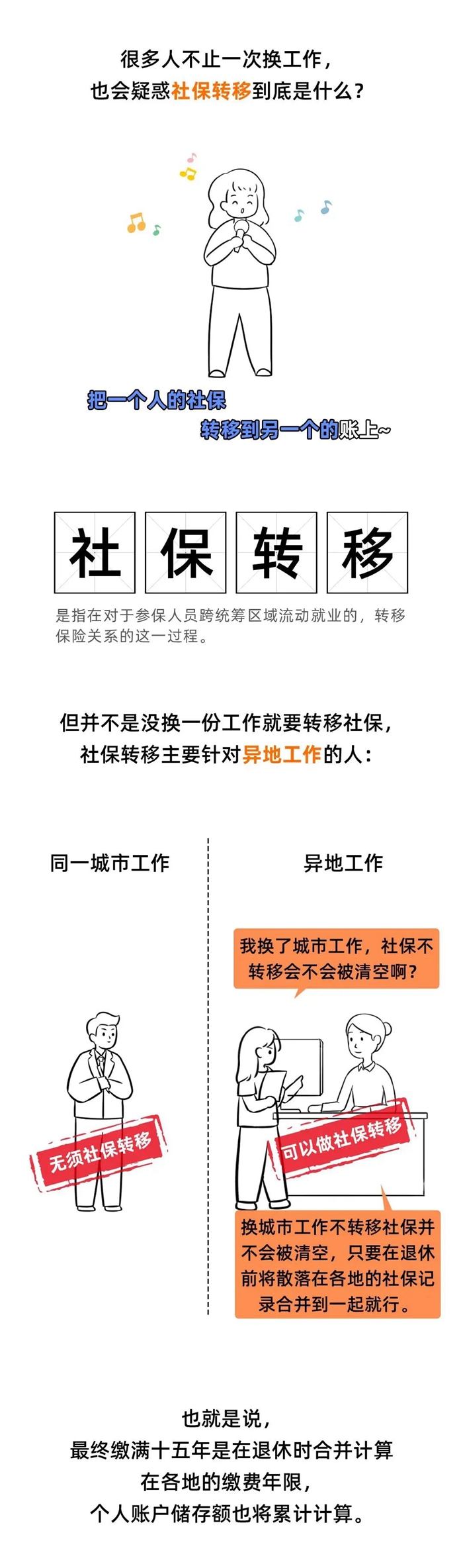 摘要:在金三銀四招聘季期,很多小伙伴都有換工作的打算,或者已經(jīng)換工作了。不少小伙伴跨省跨市工作,都有這個疑惑:換工作地點了,社保到底需不需要轉(zhuǎn)移?又如何轉(zhuǎn)移?如果不轉(zhuǎn)移,那社保異地繳納會不會影響?zhàn)B老金領(lǐng)???今天都來解答!