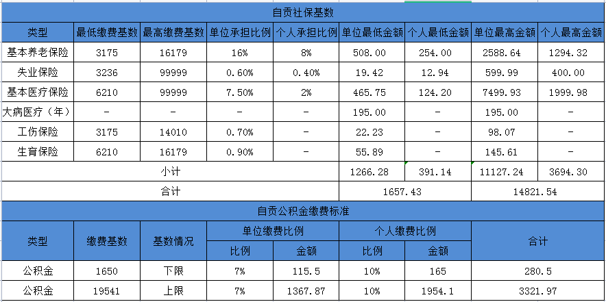 以下是巴中市2021年社保、公積金繳費基數(shù)表